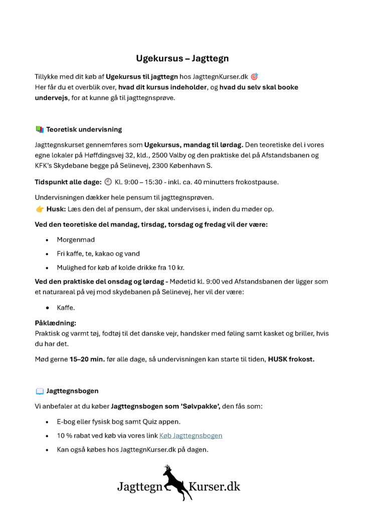 I vil møde en lokal jagtbutik, som JagttegnKurser.dk har et godt samarbejde med, der vil på dagen være gode tilbud til kursister i butikken.
