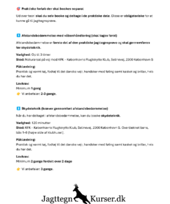 Opfølgende jagttegnskursus hvor vi gennemgår våben og ammunition samt gennemgår Lovgivningen herom og generelt.